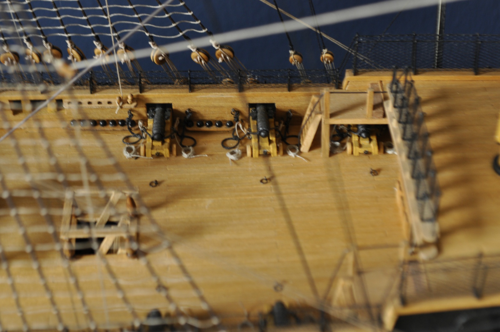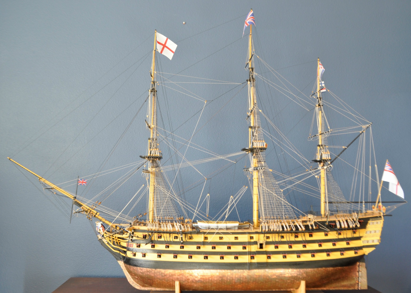 Victory was in active service of the British Navy from 1765-1812 and is in my opinion the most noteworthy warship of the modern era. Victory was Lord Horatio Nelson’s flagship at the Battle of Trafalgar on 21 October 1805, in which the British fleet defeated the combined forces of France and Spain. Lord Nelson was killed during the battle. Victory was 186 feet in length along the gun deck and carried 104 guns. Her compliment was 821.