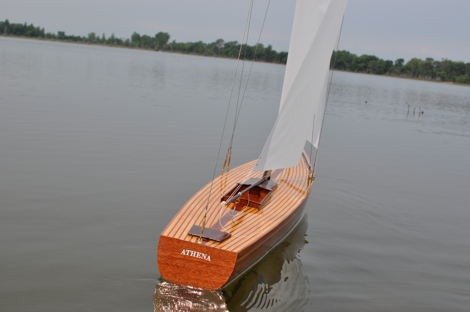 Athena, named for my daughter, is a 50 inch remote control racing sloop designed by Will Lesh and available as a kit from Tippecanoe Boats. The sloop stands at nearly 8 feet tall. I highly recommend Will's kits and thank him for his advice during the build process. I also must thank Carl Miller from Hawaii who provided me encouragment, tips, and the inspiration for many of the modifications I made to Will's design that were based on his T50 Aurora.